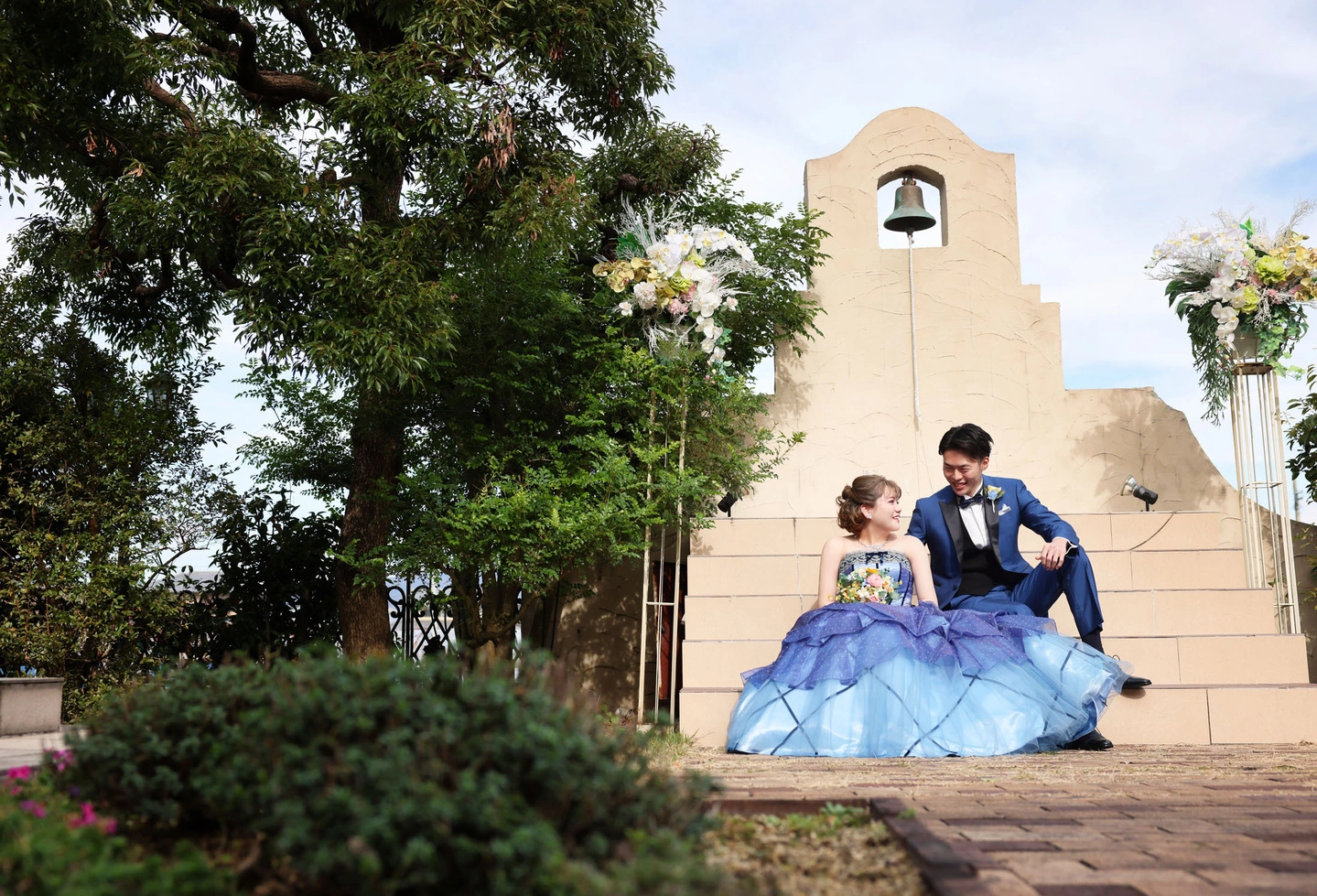 ブルー・青のウェディングドレスには「永遠の幸せ」「知性」「清らかさ」といった意味があるといわれています。 ヨーロッパにはサムシングフォーという結婚式の言い伝えがあり、その中の一つであるサムシングブルーは青いものを取り入れる風習です。 青・水色のウェディングドレスを着た花嫁さんは、清潔感と気品のある印象につながります。